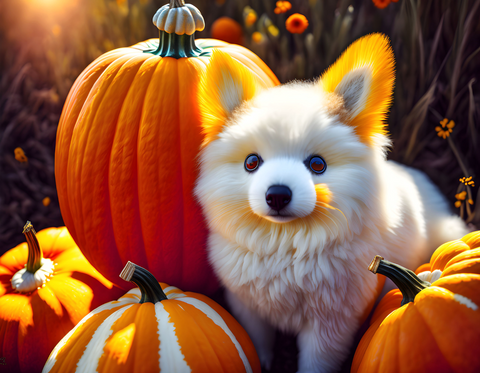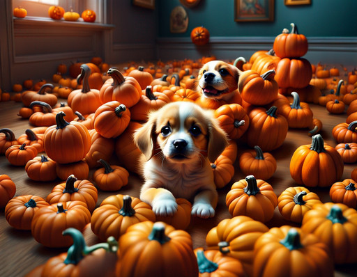 #ai #dreamup #digitalart #photorealistic #photography #portrait #wallpaper #animal #dog #fanart #crazy #funny #mad #pumpkins #puppy #ai_art #pumpkinpals