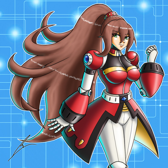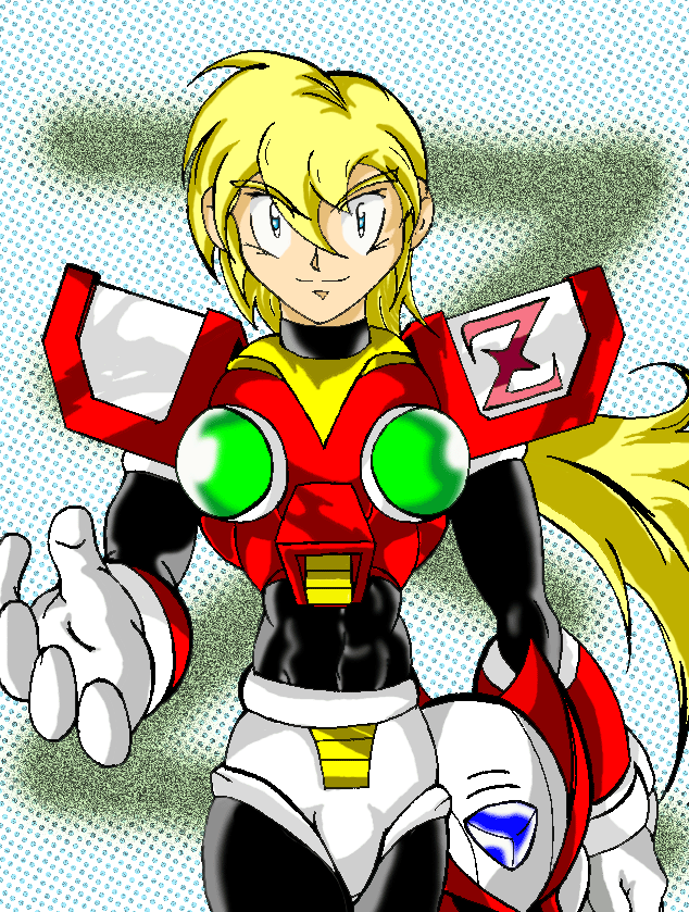 One of the coolest reploid beauties I've ever seen! That black and red color theme looks really sleek! Nice work! (link's busted btw)