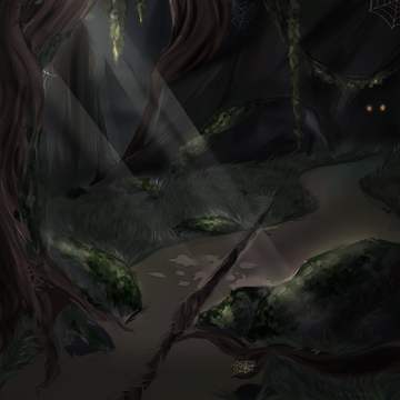 Landscape painting of a muddy swampy fantasy forest.Related content