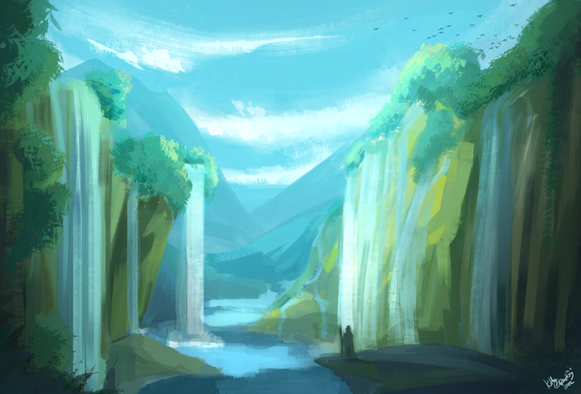 #artwork #creek #fantasy #landscape #natural #nature #painting #spring #art #digitalart #digitalpainting #fantasylandscape #forest #idyllic #landscapepainting #waterfall