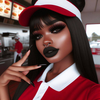 #ai #blackhair #blackhairedgirl #blackwoman #fastfood #provocative #black_hair #aicharacter #blackwomanart #aimodel #blackwomanbeauty #ai_generated_art #aiconceptart #modelai #aicharacterconcept #designerai