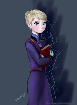 She totally is; a lot of beat boards and concept art had her carrying around a book while Anna's running around. XD
