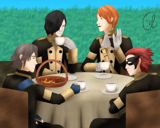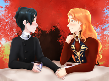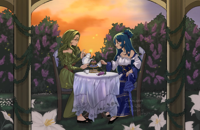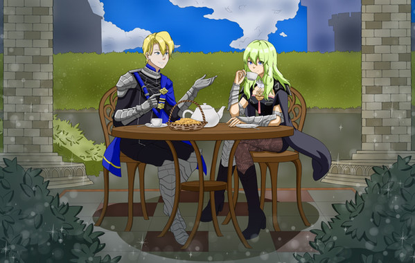 Finally, a long overdue AT with m-1r of one of her FE3H OCs, Giovanna, with FERDINAND VON AEGIR. Life just sort of punched me in the face and I kind of lost my weekends for about 3 months, so...sorry about that. =A=Alternative title is "Spill the Tea", because the likelihood of Giovanna hearing some juicy gossip while tending to people is really damn high. Ferdinand has his love of tea, so the two sitting down and having a cup to relax during the war seemed appropriate. Too bad that the (probably fake) story she's telling is quite concerning to poor Ferdie.
