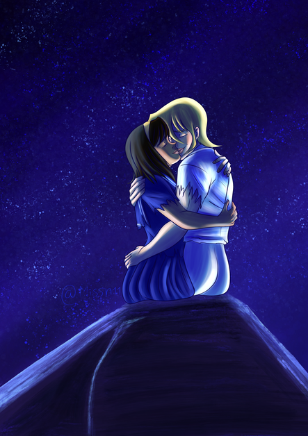 All the hard work and effort you put into the sketch definitely paid off 'cause this is beautiful~ The lines look really good, and the colors are marvelous, and the shading is superb, ESPECIALLY WITH THE HIGHLIGHTS FROM THE MOON.
