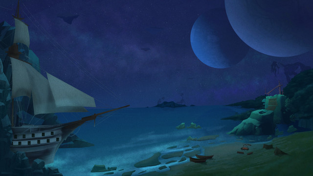 #astral #beach #boat #chill #conceptart #digitalart #environment #fantasy #landscape #lofi #moon #night #painting #pirate #poetry #sea #space #star #wallpaper #drawingsandpaintings