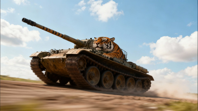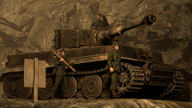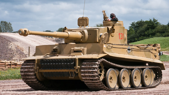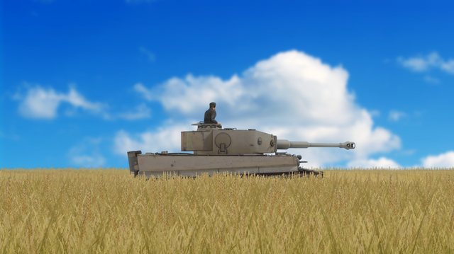 A Tiger tank crew engages an enemy off in the field.