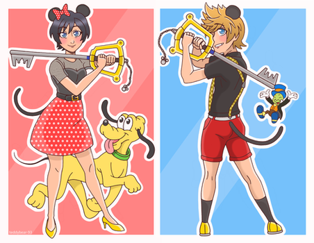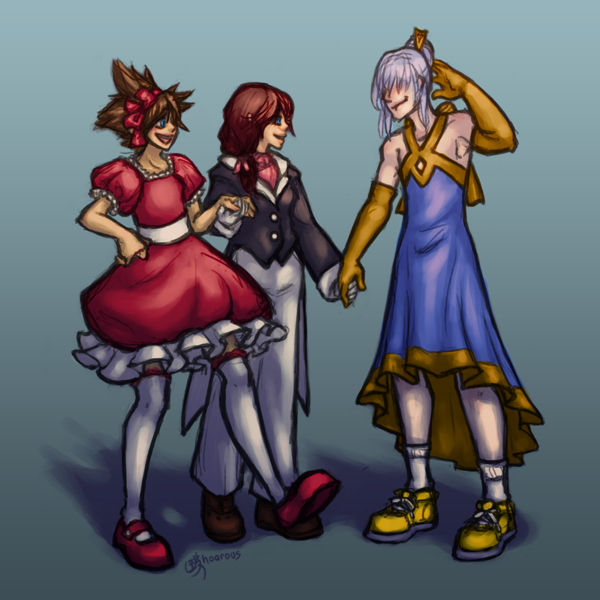I was gonna draw Mickey and Riku too but I got lazy ^^'Anyway, a friend of mine asked why not draw them in dresses too? And I was like... yeah. Why not?