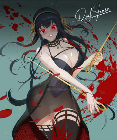 #blood #boots #rose #straps #blackdress #gloves #thighhighs #yorforgerspyxfamily