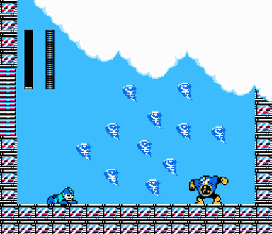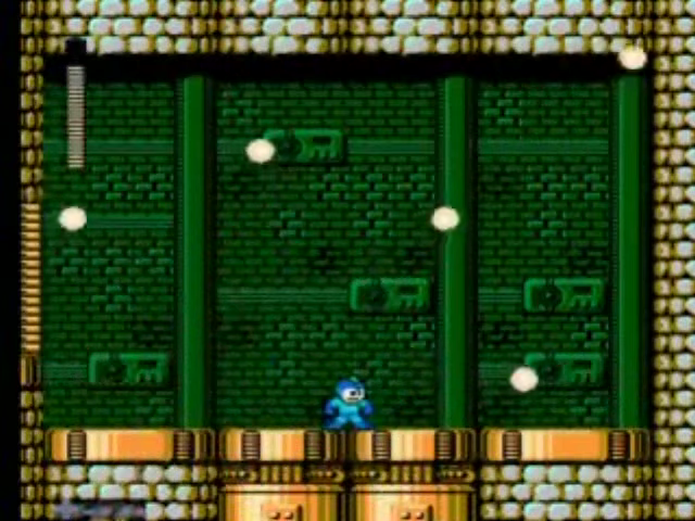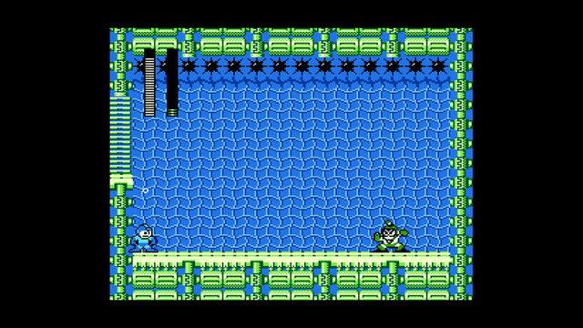 (Mega Man looks up, and see Bubble Man stuck in the spikes)