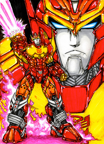 It just came to my attention that my colored version of Rodimus never got uploaded yet, so, uh, here he is.IDW's MTMTE-style Rodimus. I'm pretty sure I mish-mashed Alex Milne's Rodimus with Nick Roche's. Kinda bugs me, in a "Now you can't unsee it" kinda way.