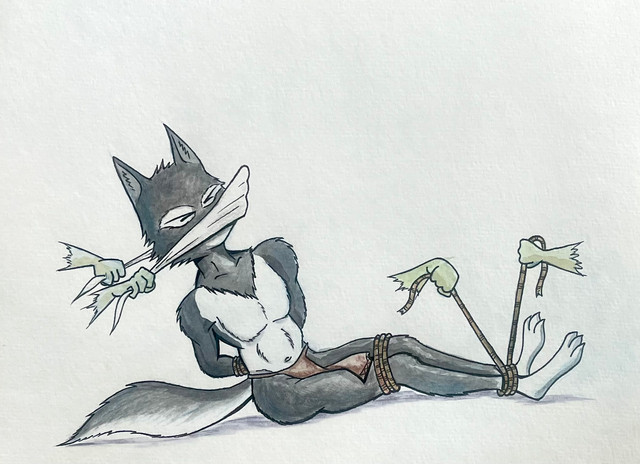 For 61021376 for their contribution to my fursuit fund. I had a fun time drawing this. In case it wasn't obvious, I LOVE ransom perils and cute boys in ropes and gags ^^