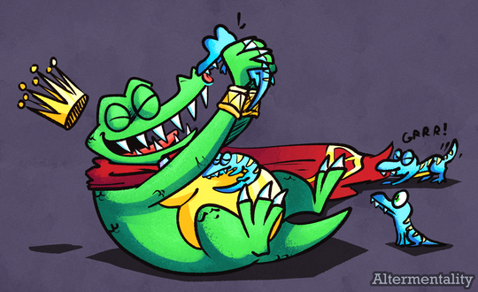 Also there's kind of a story to this drawing that's based on my own little headcanon. The story is that K. Rool loved to pretend to be a prince/king (even though he wasn't actually one at all), so he'd usually dress up in his own little hand-crafted crown and cape. This obsession grew once he found that crown he wears to this day. And then sometime later when he got older, he proved to be powerful or something, so he labeled himself an actual king without question of the other Kremlings out of fear. Haven't worked through the whole story entirely yet, but that's all I got for now