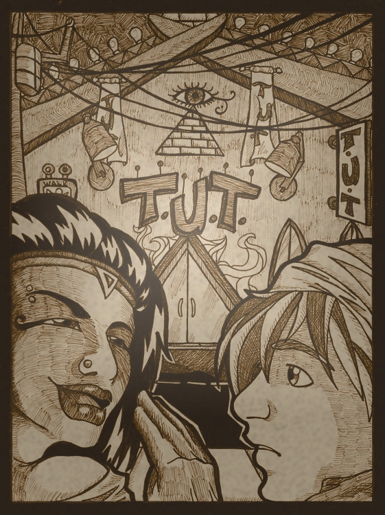 This is a scene from the comic I'm working on for school, G.R.I.M. , in which the main character, Korrigan, gets coaxed into a nightclub in the Egyptian sect of the city. (Really, don't ask >_> )The place is called, obviously, T.U.T., for 'The Underground Tower'. It's basically a 20-story building, (yes, you need lots of floors when the place is open to every Egyptian soul that's ever lived,) all underground.