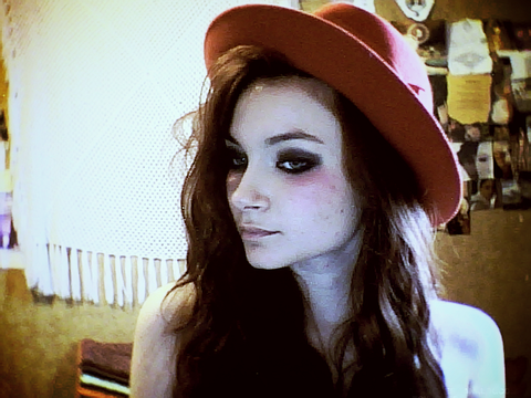 just messin' around- liquified her teeth, eyes, and eyebrows in photoshop, changed her hair color, and skin tone, took it to paintshop, changed her eye color with the red eye remover. too it back to photoshop, added paintbrushes, text, and then changed contrast.Related content