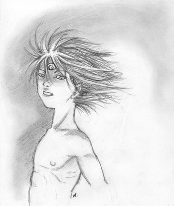 cleaning out my room for college, and found a few sketches that i hadn't scanned yet. so i colored this one real quick.Fujimoto's interesting facial markings are one of my favorite parts of his design. But who knows if it's make up or tatoos, or just how he looks