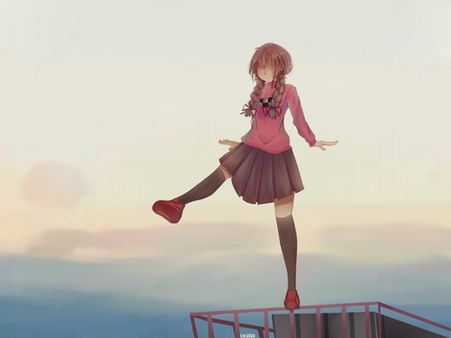 At the end of the game, the girl jumped down her flat to finish the nightmare.....
