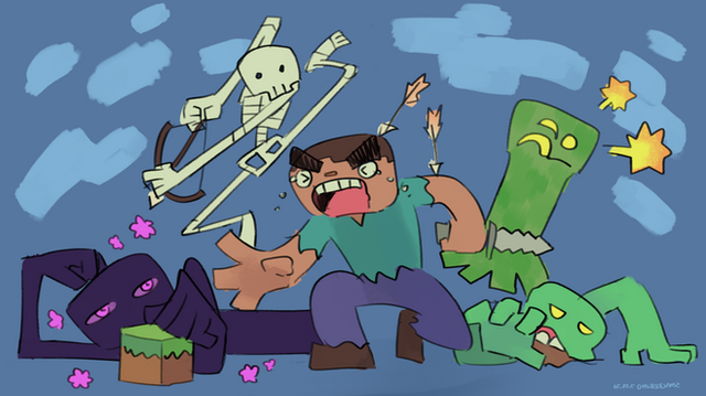 Minecraft is becoming populer amung com. nerds as a six button wireless mouse with tits, but I hesitate to call it a "Game" strickliy speaking-alright there are skeletons in it that you have to wave a sword 'till they stopped moving which would normally characterizes as a game, but that's not what you're there for and the same way you don't go to the beach to get sand kicked in your face and you don't go to glasgow to get your eyes gouged out with broken bottels. NO, respectively you build sandcastles and purchase heroin. Minecraft is a creativity toy that just so happens to contain monsters and frankly I can't think of a better way to improve a creativity toy. it's like an ech-a-skech where-every now and again-space invaders drop down from above and lefty knob and righty knob have to put aside their differences so that they could live and twiddle another day.