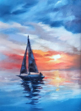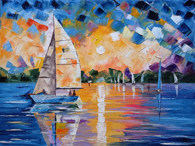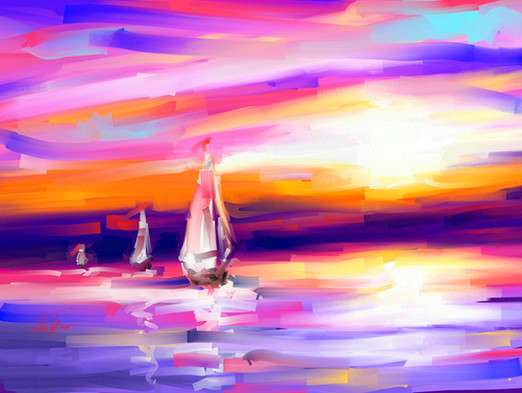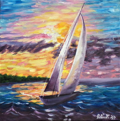 #artist #pink #sail #smallart #yacht #artwork #canvas #couple #miniature #originalart #romantic #sailboat #sailing #seascape #sunlight #sunset #originalpainting #couplepainting