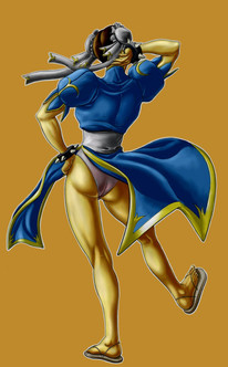 Not only do I like Cammy showering in the background, but I love this curvier version of Chun Li. I'd play her the most often, but since I couldn't get a hang of those joystick/button combos, I never lasted more than four opponents. This actually looks like something that could have been published in Playboy, since it looks like a combo of a couple of their favorite artists' styles. Sweet!