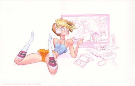 I love this. It reminds me of some old school art. Especially the redhead fom some old Hanna Barbara Cartoons. Well done.