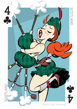"54 Intercontinental Cuties" is a playing card deck that I'm co-producing to sell at comic-con this year. On the face of each card will be a unique pin up girl themed to her own country.I'm teaming up with my good buddy and fellow Pixar story artist Josh Cooley (who draws some pretty sassy fillies himself). We're splitting the art for the deck down the middle, so we'll each be making 27 original pin up girls total.