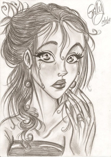 For her hair I take inspiration from old hairstyle, I love to draw them! I must confess, I really love long eyelashes, but this time I tried to make a mor sober and realistic (in a way) style..