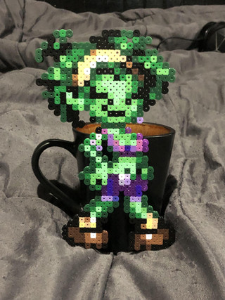 Squigly? Is that thing attached to your head friendly?Kicking off my first Perler bead character of 2016. It's Squigly from Skullgirls who in my opinion has the saddest story in any fighting game ever. I know I'm making Skullgirls characters commonly, I just love the game and art style that Lab Zero makes. I want to make them all and probably the characters from their upcoming game in 2018, Indivisible, which I have done some before.