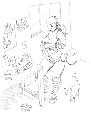 Ah,that makes sense,a rusty robot is much more intimidating than a shining brand-new one!I like your design of robot,it's really nostalgic.