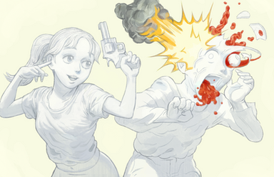 Fabulous piece; loving your art style. I might well try the whole 'colour foreground, monochrome background' look myself, so thank you for posting this piece - I'm inspired!