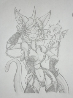 I was commissioned to draw the two different versions of an anthropomorphic Sableye. And I was asked to draw them in gothic, yet revealing attire. I went for the design with the less jagged eyes since bot myself and my client like it better.Pencils on printer paper.