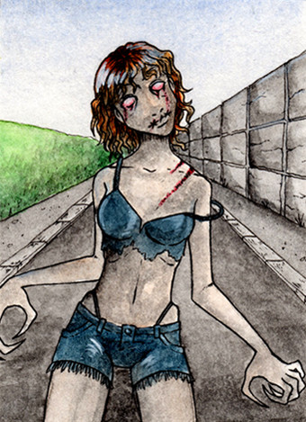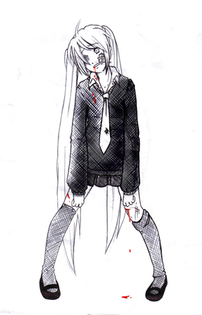 #anime #blood #cute #drawing #girl #kawaii #zombie #inktober