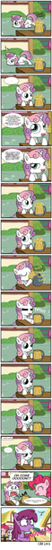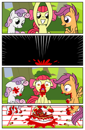 This comic is one of those "what if" type of comics. Sorry Twilight, that rubber looks pretty tough.I love drawing the CMC, Sweetie Belle is my favorite of the three! Cutie!