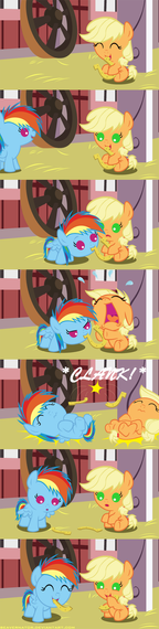 Karma! That's what happens when you try to break 3 fillies' toy right in front of them, and come out looking like your about to commit a major crime.