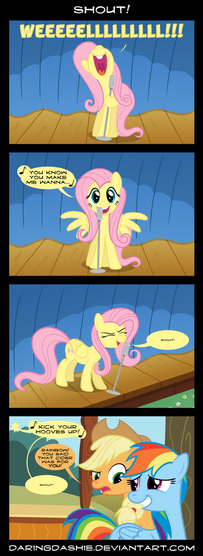 I could only see the first to pages from the preview. I thought it was going to be that Spongebob scene that I never saw (even though I remember the episode). Someone already did that with Fluttershy. (Sorry I'm not really commenting on your drawing - it looks cute, and matches the show.)