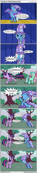 I like that comic, but I need to know which one is paying the other. Is it Pinkie who is paying Trixie for the FX to mess with Twilight's head, or is it Trixie that is paying her accomplice for her magnificient "twitchy tail" interpretation ?