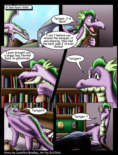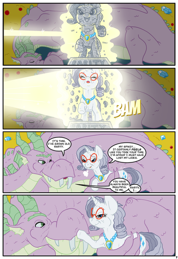 Timmowarner wrote the script for this pretty heartbreaking Spike/Rarity comic (inspired by the MLP fanfic “The Centrepiece of My Collection” by Geldon), and commissioned me to illustrate it. You may have already seen it on his account, but if not, enjoy!
