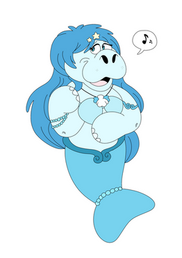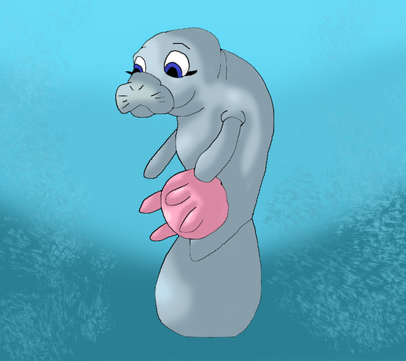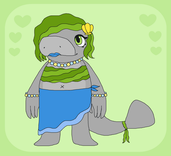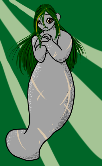A cute and very silly drawing of a manatee who is half mer.Related content