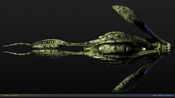 It makes me remind of the Half Life 2 alien ships, I love the organical look of this (don't know why it looks so organical to me).