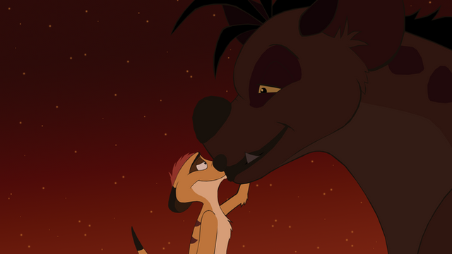 The screencap I used for Timon is from the TV series, and the one for Shenzi is from the 1st movie, but I changed the colors.Shenzi, Timon (c) Disney