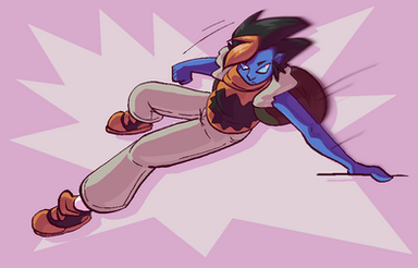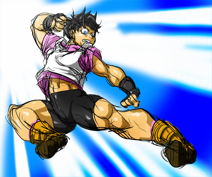 Oh wow, this looks great! Very stylish and distinct, the image really pops off the screen. The colors help a lot, the background contrasts Videl's outfit in a way that makes it incredibly pleasing to the eye. And you did a great job on the pose, it really sells the idea that she is flying through the air at someone. Keep up the great work friend, this looks amazing!