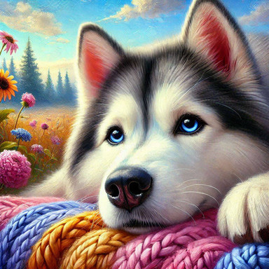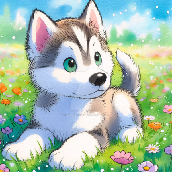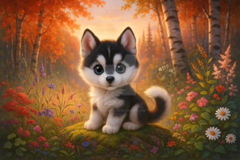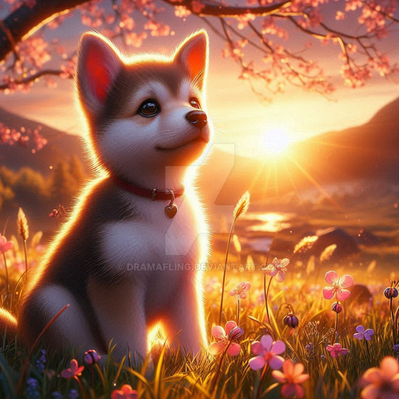#dog #portrait #animal #animalart #digitalart #canine #fluffy #husky #adoptable #ai #characterdesign #cute #exclusive #flowers #painting #pup #puppy #rose #roses #siberianhusky #sunset #whelp