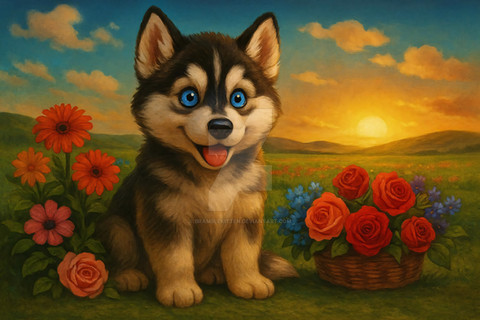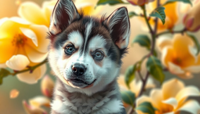 #dog #animal #digitalart #cartoon #portrait #fluffy #adoptable #ai #animalart #characterdesign #cute #exclusive #floral #forest #husky #pup #puppy #wallpaper #siberianhusly