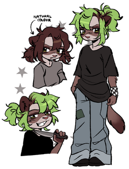 anyways this is Alice, she is a Big Time Partier and a hyena with some awd mixed in. i may futz with her design some more since i Can, Now, just to simplify it and make it a bit more legible.
