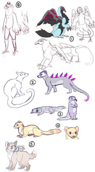 did a bunch of animal studies that turned into design practice!!you can feel free to offer on any of them!! i'm actually really pleased with all of these designs so if no one wants them i'll definitely keep em ;0 mostly looking for cash offers, probably above $15!