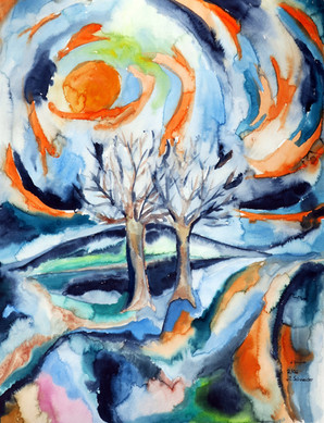 Some trees are standing before a red and orange colored volcano. These trees are remembering me of a special feeling of my own. And the volcano does what a volcano has to do.Oh, little tree, live the dream.