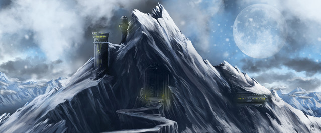 This is very lovely art! I'm afraid I have to agree with others - no matter how lovely, that would be a terrible place to build. I'd be terrified the end of the cliff would break off.