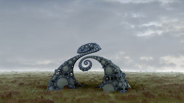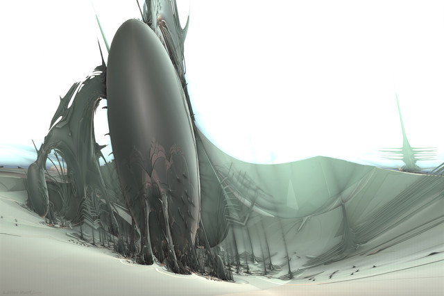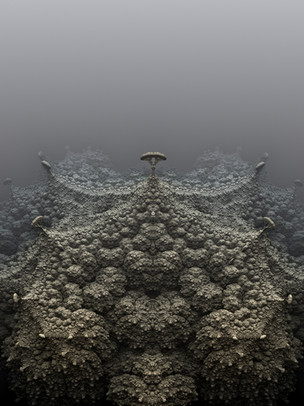 #3d #algorithm #background #bizarre #fantasy #fiction #fog #fractal #grey #landscape #mathematics #mist #recursion #scaffold #science #staging #surreal #bramvan