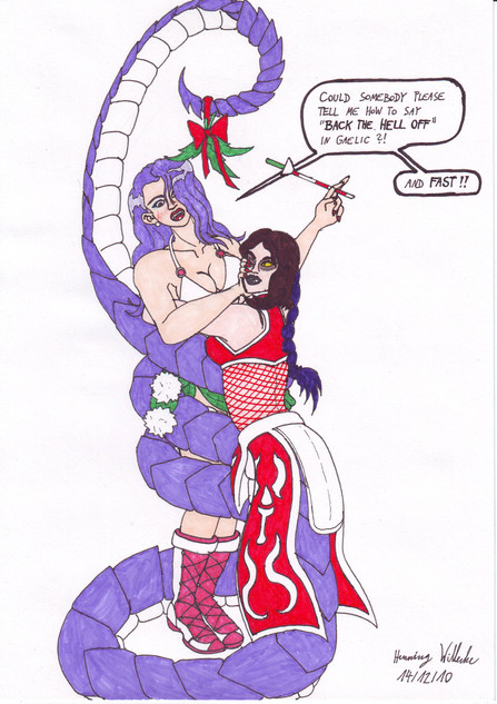 This is a very special birthday gift from me toOur two lovely evil-doers Viper and Whisper teaming up to torture our two fierce amazons Yenna and Aella.