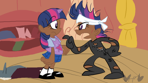 During her final battle against chrysalis after thorax rule over changelings kind, a dead locked battle between a former queen and a princess, eventually the queen chrysalis throw her away to human world and destroyed the mirror, the very only thing that she can go home back to equestria. Twilight got herself stranded into human world in many years, through the course of her human friends adventure in human world, princess twilight getting used around and interact together with her dearest student and also friend, sunset shimmer.