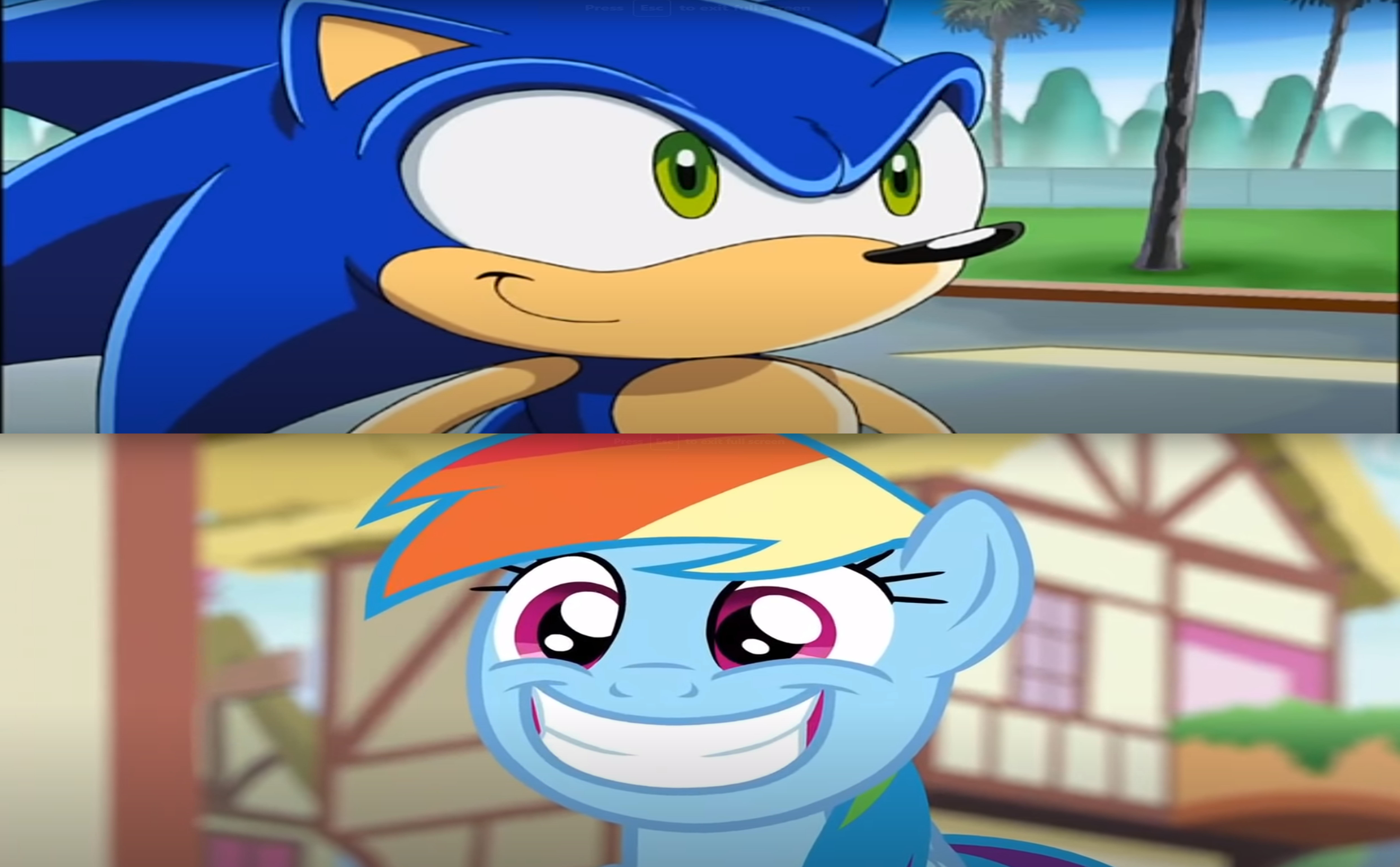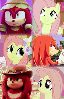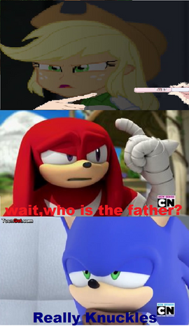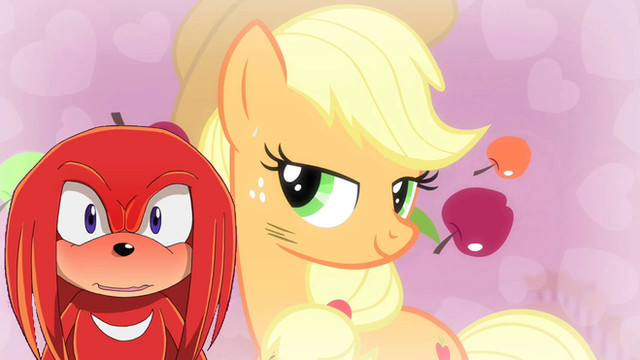 applejack from my little pony:friendship is magic.knuckles the echidna from sonic the hedgehog and sonic x.